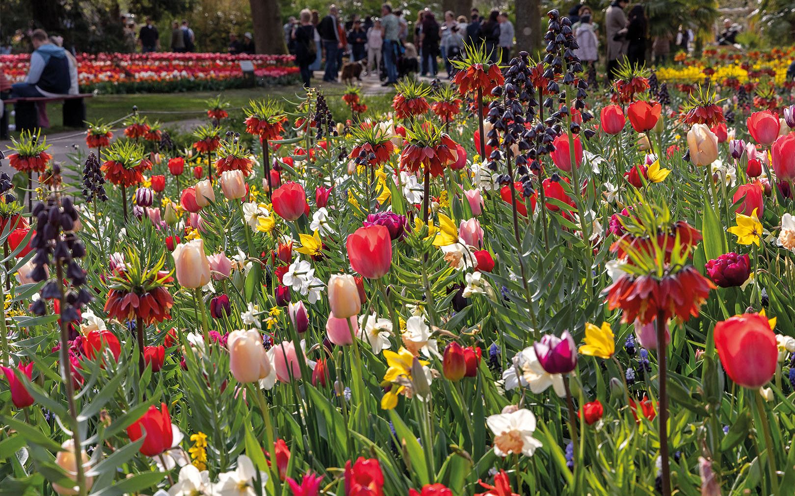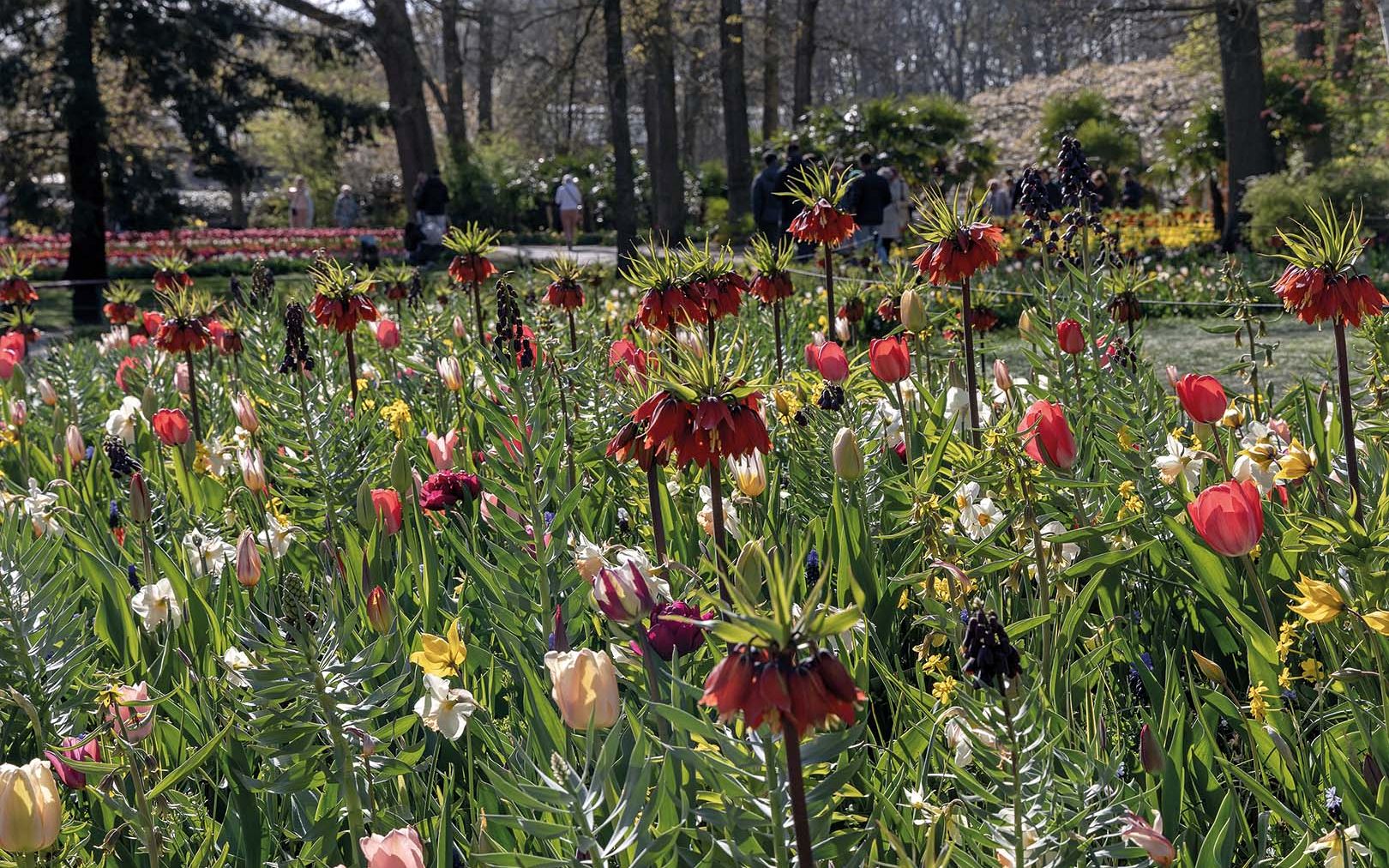 In Anlehnung an das Blumenstillleben von 1665 wurde eine sehr abwechslungsreiche Mischung aus Tulpen und Blumenzwiebeln gewählt. Die Tulpen sorgen für die roten und rosafarbenen Farbtöne, während die Zwiebeln für eine weitere visuelle Verführung sorgen, die auch in van Aelsts Blumensträußen zu sehen war.