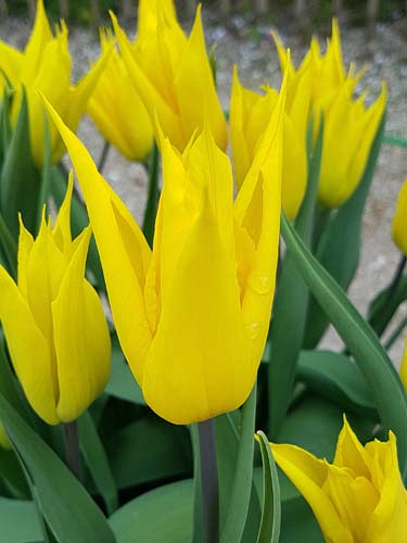Mooie gemengde Greigii Tulpen. Grijsgroen blad met donkere strepen. Mooi in de border maar vooral geschikt voor in een pot op terras of ba..